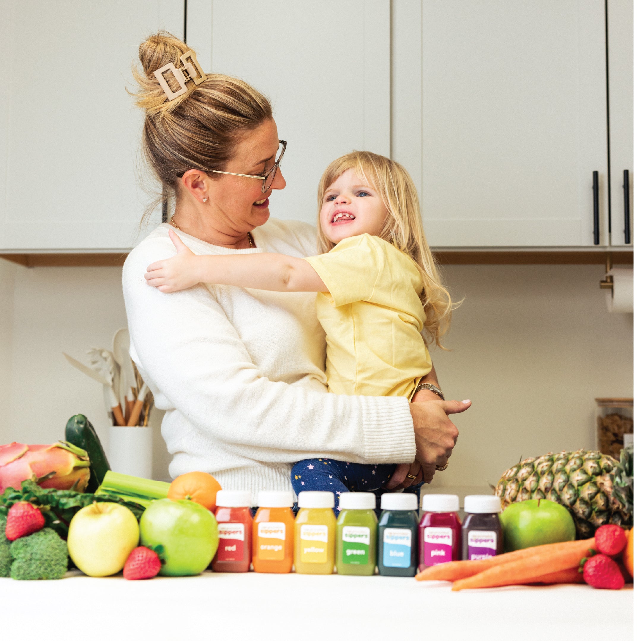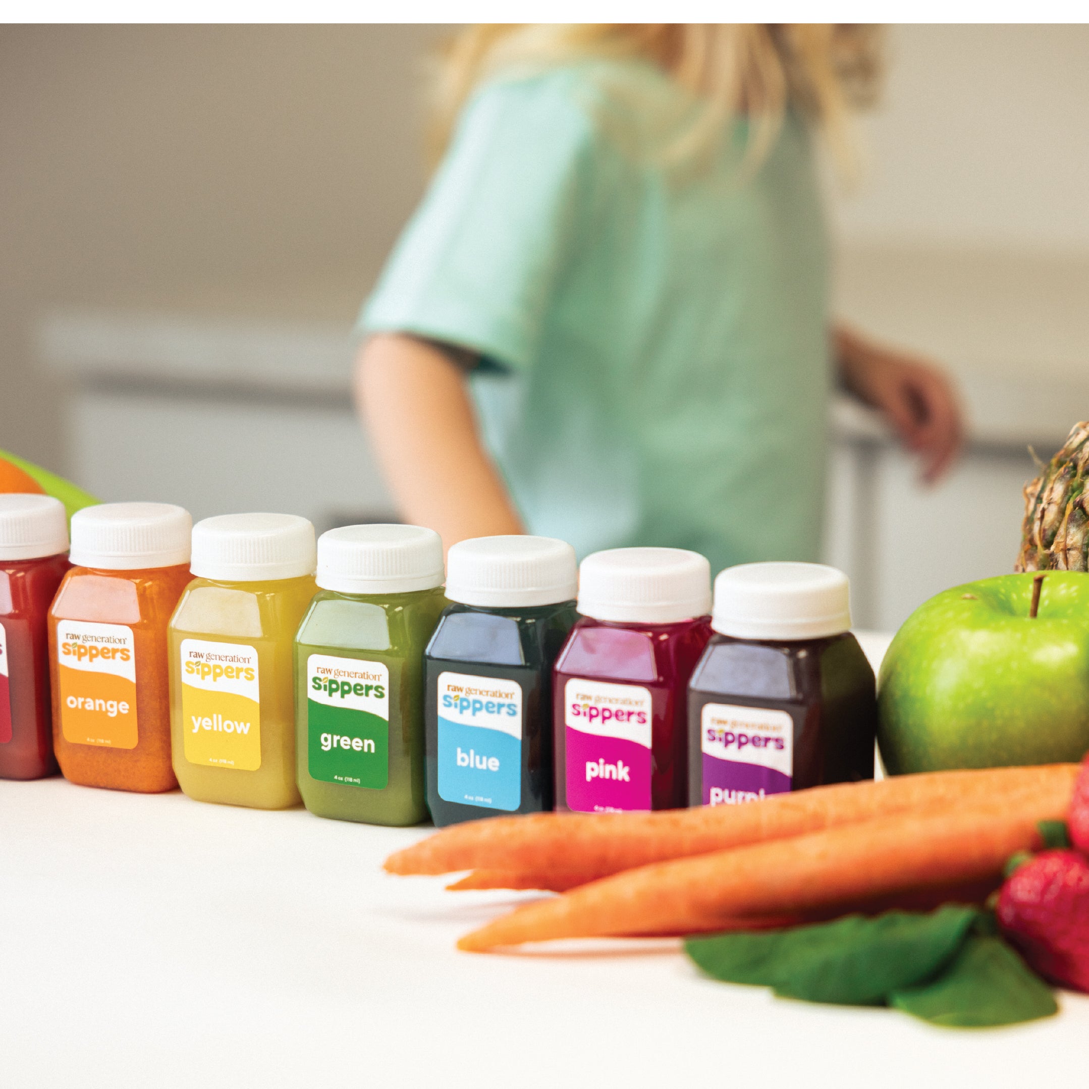 Little Sippers™ was born. The 7 flavors were crafted to be the colors of the rainbow, since children are naturally drawn to bright colors. Our in-house nutritionist, Lisa Testa, developed each of the 7 flavors to not only pack in as many different fruits and vegetables as possible, but to also taste great to picky eaters.